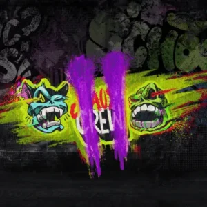Chaos Crew 2 plunges you into a unique urban world. Its art style is inspired by graffiti and punk culture. Neon highlights cut through the gray, chaotic backdrop. The game features returning characters Cranky Cat and Sketchy. Other symbols include skulls, pyramids, and artistic icons. The visual presentation creates an immersive, rebellious atmosphere.